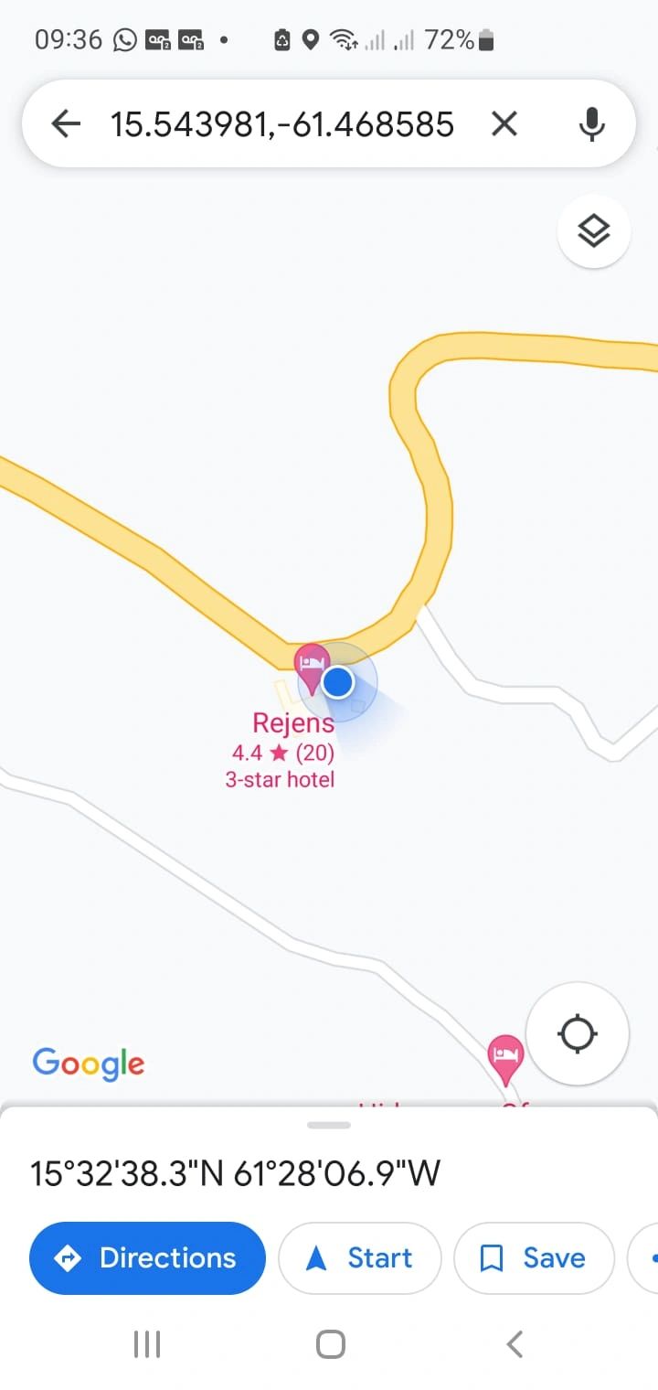 On Google Earth the hotel can be found at grid 15.54 degrees North and 61.47 Degrees West.